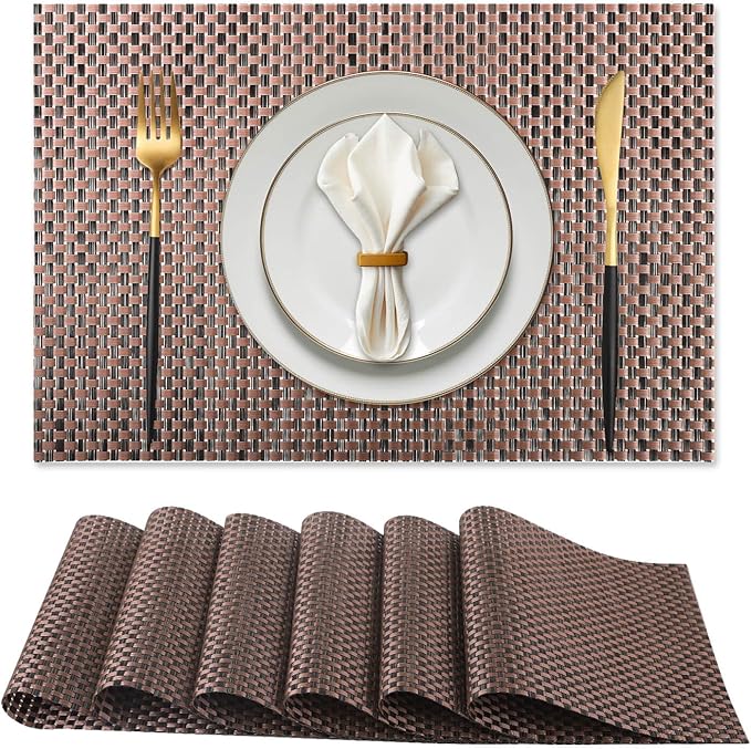 - 【Home Practical Decor】: Various types of modern textured and color placemats are available, 18x12 inch extra large rectangular perfect size set of 6 pieces placemats, is a decorative accessories of the table setting, both indoor and outdoor will be perfect for your dish or dinner plate size. These placemats can be rolled up through long storage and put away, will remain stay flat when spread out, very easy to store and carry around