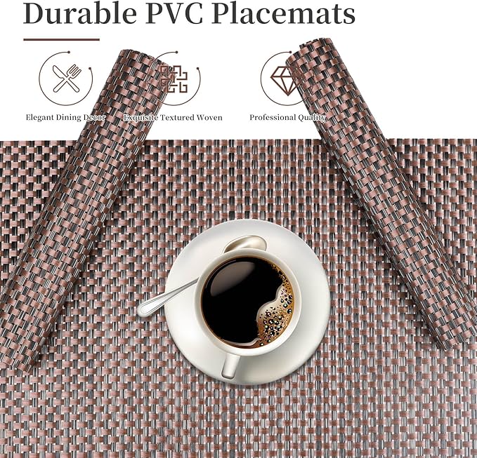 - 【Eco-Friendly Material】: EDanle placemats are made of high quality natural PVC/vinyl and polyester with long-lasting heat insulation and stain resistant features to provide protection for your table and prevent food residues and sauces from corroding the table and doilies for tables while adding fancy ambiance to your table