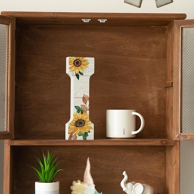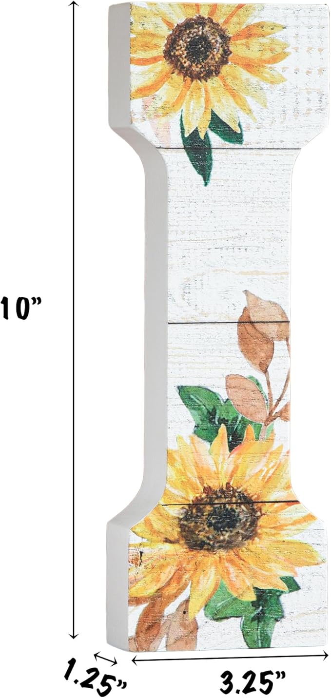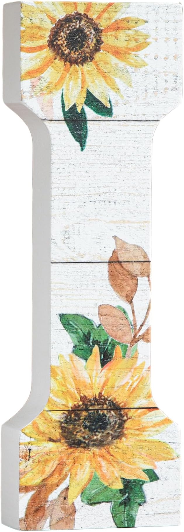 COLLECTIVE HOME - 10" Wood Lettes for Wall Decor, Sunflower Tabletop Alphabet Decoration, DIY Farmhouse Decor, Rustic Freestanding Monogram Block (I)