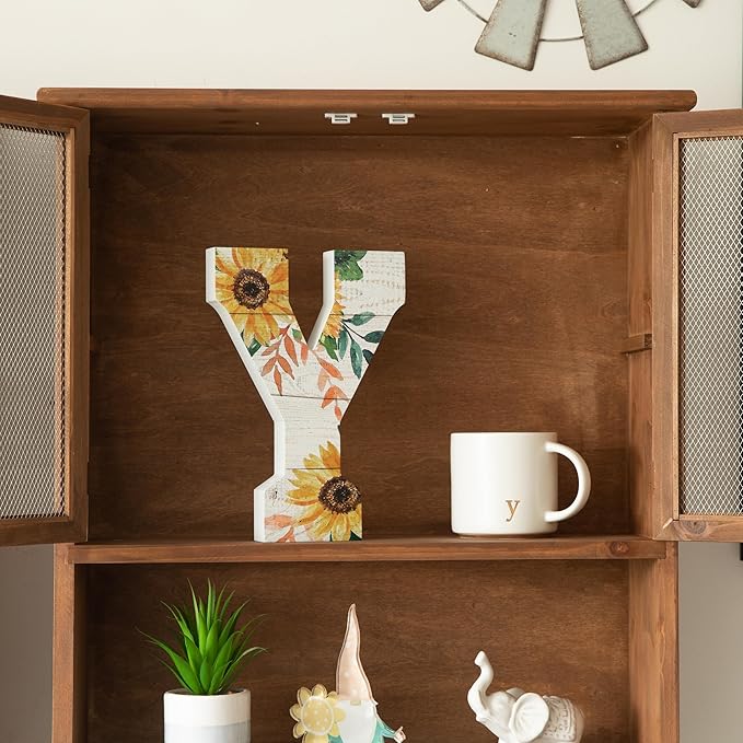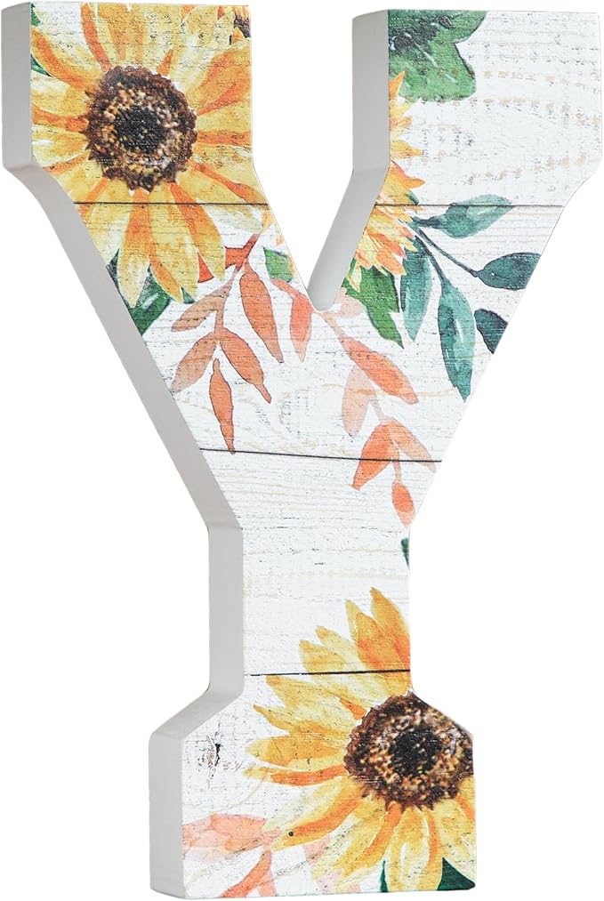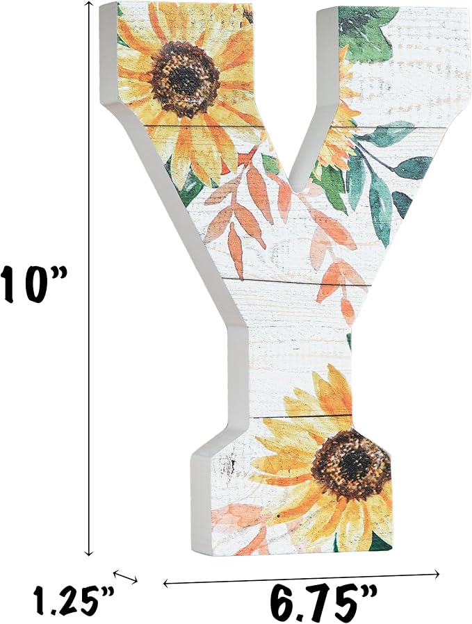 COLLECTIVE HOME - 10" Wood Lettes for Wall Decor, Sunflower Tabletop Alphabet Decoration, DIY Farmhouse Decor, Rustic Freestanding Monogram Block (Y)