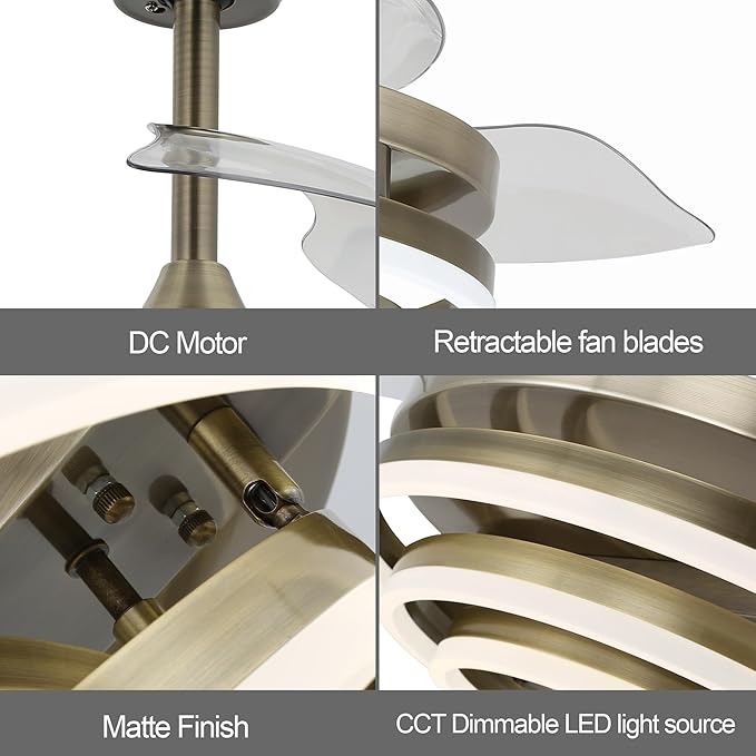- 💡【Space-saving & Low-maintenance】Our fan's blades automatically retract internally, saving space and reducing the need for frequent cleaning. The integrated LED light provides ample energy-efficient illumination.