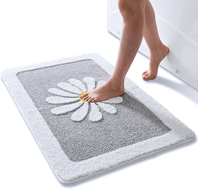 Bathroom Rugs Mat, White Flower Bath Rugs Fluffy Soft Superfine Fiber Rugs Non Slip Bath Mat Machine Wash Plush Mats,Bathroom Rug for Bathroom Shower Room (24x36, Gray)