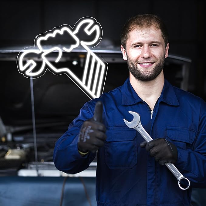 - π Perfect Business Decoration π: Wrench Garage LED signs can decorate your personal style and create a unique atmosphere. Adding "Wrench Garage" neon lights signs can liven up any dull space and is an essential garage decoration. It is also an ideal gift for birthdays, Valentine's Day, Christmas and other celebratory occasions, perfect for anyone who likes a fun and interesting atmosphere.