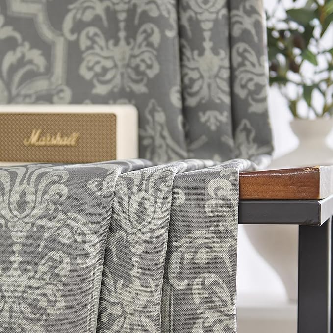 jinchan Room Darkening Curtains for Bedroom Grey Damask Patterned Curtains 96 Inch Length for Living Room Linen Textured Vintage 8FT Long Drapes Medallion Window Treatments Grommet Top 2 Panels Set