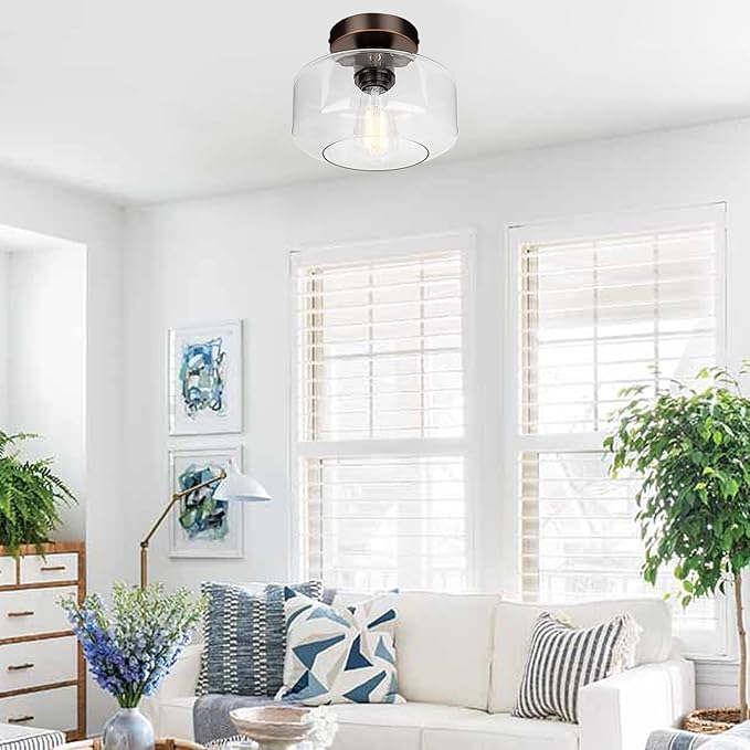 - Semi-Flush Mount Design & Classic Style: This oil rubbed bronze ceiling light is the perfect choice to complement your industrial/modern look. Its oil rubbed bronze base and impurity-free hand-blown clear glass with excellent light transmittance offer a modern interpretation of the classic urban industrial style.