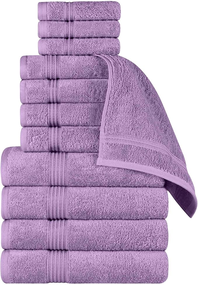 Superior Egyptian Cotton 12-Piece Towel Set, Assorted Towels for Home Bathroom, Guest Bath Decor Essentials, Includes 4 Bath, 4 Hand, 4 Face Towels/Washcloths, Quick Dry, Absorbent - Royal Purple