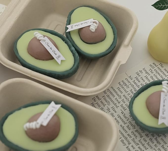 Cute Avocado Shaped Scented Candle Soy Wax Decorative Candle 2.8oz 6 Hours Lasting Candles Aromatherapy Candles (A Avocado,3.3''*2.3''Pillar)
