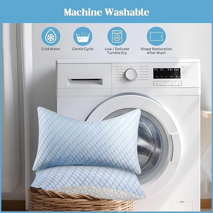 - Cooling & Double Side Pillows - Our Memory Foam Pillowcase made of cooling& material. The cooling side is made of cool ice silk fabric, great for when the weather is hot, it can keep you cool and dry all night long. and the soft side is made of 55% polyester and 45% rayon,which is breathable and soft to the touch.Double-sided design can be used interchangeably.