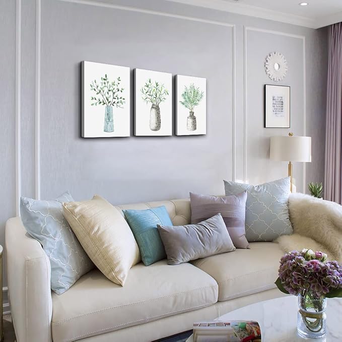 AHUASJART Canvas Wall Art Paintings For Kitchen Dining Room Large Size Wall Decor For Living Room Bedroom Wall Decoration Office Decor Green Leaf Vase Wall Pictures Artwork For Home Walls 3 Piece