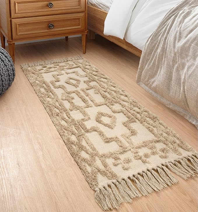 - Natural Cotton Boho Rug: This bohemian hallway rug is made from innately soft cotton and sturdy polyester. Without any industrial prints and pungent smell, it makes the neutral floor mat cozy and great for your kids and pets
