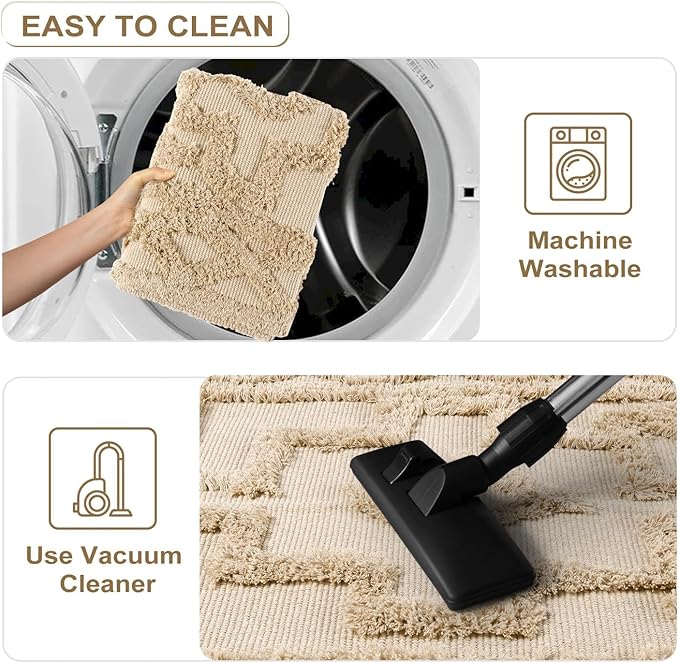 - Easy to Clean Washable Rug: The best choice for cotton area rug maintenance would be using upright or canister vacuums, to prevent dust and crumbs. Allows to machine wash. Wash in cold water with mild detergent. Tumble dry on low heat or lay to air dry