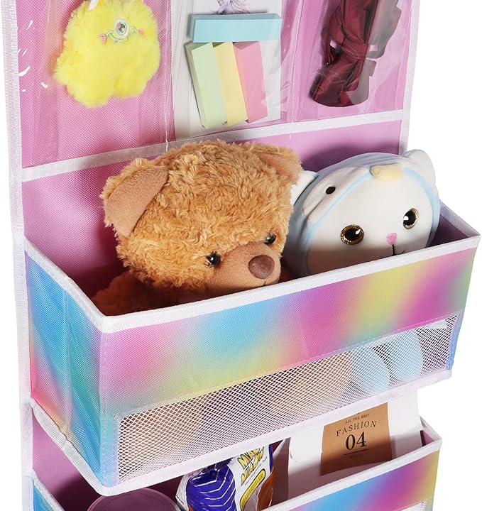 Univivi Door Storage Organizer Nursery Over the Door Organizer Baby Storage with 4 Large Pockets and 3 Small PVC Pockets for Baby Girls Room Toys and Sundries Organization