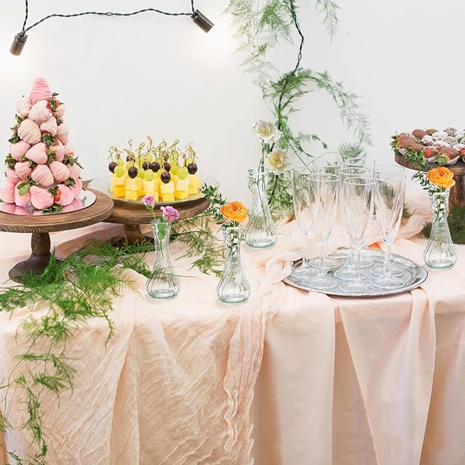 16 Pack Glass Bud Vase, Clear Small Flower Vases in Bulk, Vintage Glass Vases for Centerpieces, Mini Vase Floral Bottle for Rustic Wedding Home Table Decor, Floral Party Arrangements