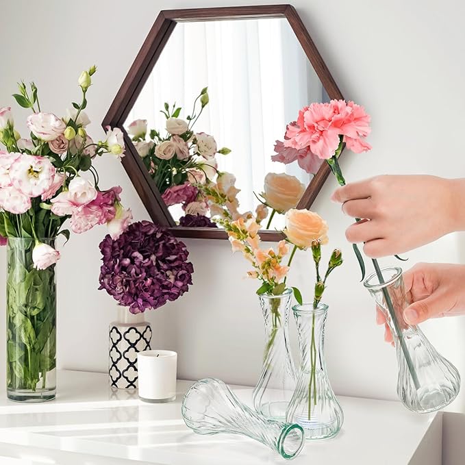 - Elegant Design: Decorated with threaded patterns, further enhance our small glass vase attractiveness. The patterned surface makes them look very textured and shine under the light. With these beautiful vases with flowers, you can feel the beauty of nature at home.