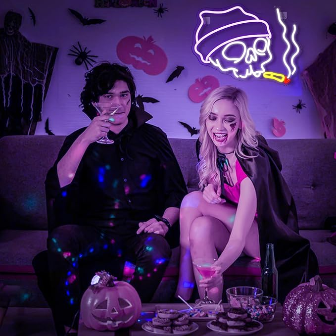 Lucunstar Skull Neon Sign,Halloween LED Sign,Neon Signs for Wall Decor ,Halloween Neon Sign,Party Neon Sign for Halloween Day Gift,Bedroom Wall Decor