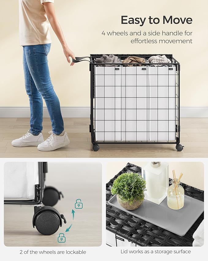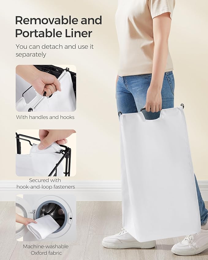 - [Removable and Washable Liner] The Oxford fabric liner bag in this laundry cart is detachable and can be used separately. It's portable with metal handles and machine washable for added convenience. The 3-compartment design helps you sort your garments