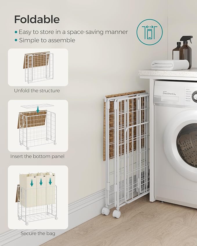 - [Durable and Easy to Assemble] Thanks to the folding design, this laundry basket with lid is easy to assemble. The wire frame and the wear-resistant 600D Oxford fabric bag allow for a long service life