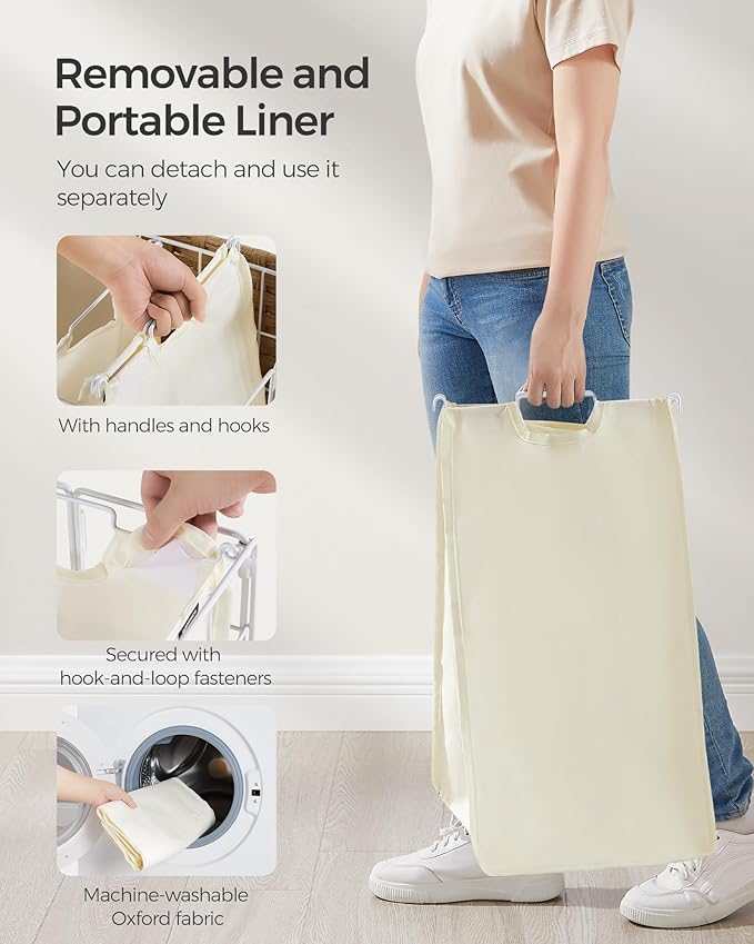 - [Removable and Washable Liner] The Oxford fabric liner bag in this laundry hamper is detachable and can be used separately. It's portable with metal handles and machine washable for added convenience