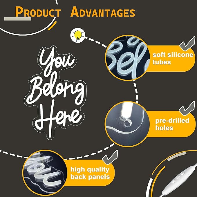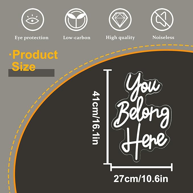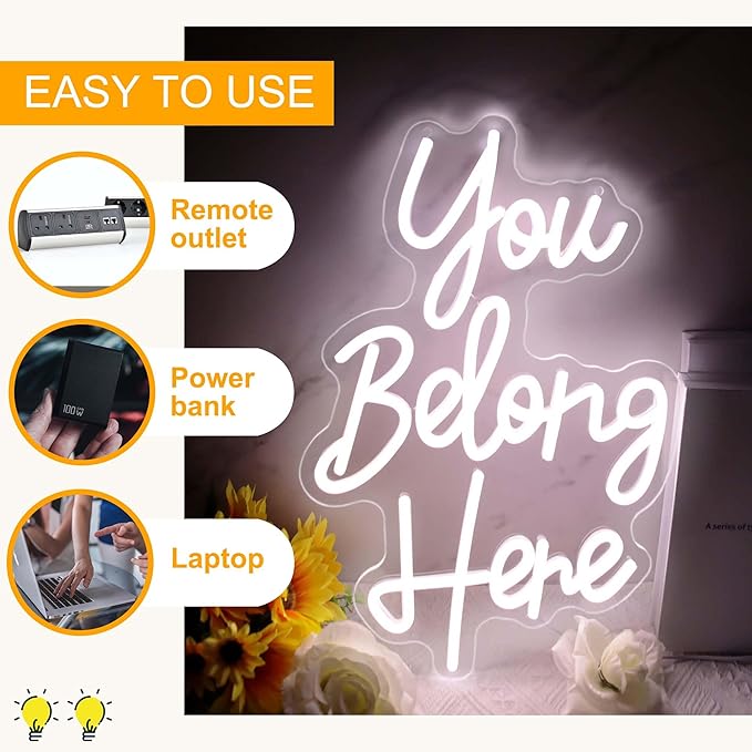You Belong Here Neon Signs for Wall Decor, Dimmable LED Neon Signs for Bedroom, Custom Inspirational Quote LED Neon Light for Salon Bar Home Wall Decor Classroom Decor Party Personalized