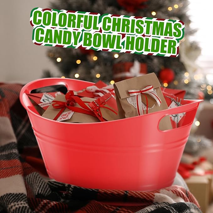 Norme 24 Pcs Oval Storage Tub with Handles, 4.5L Plastic Ice Bucket Wine Beer Champagne Bottle Drink Cooler Tub for Parties Beverage, Storage Basket (Red)
