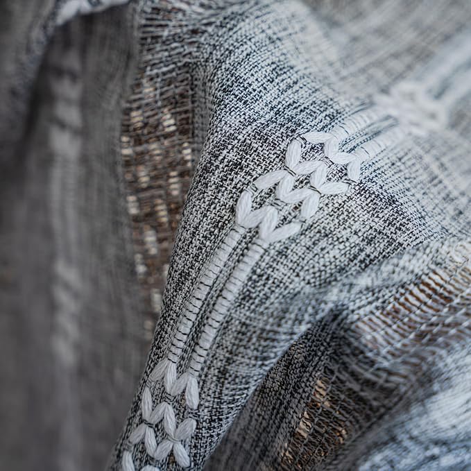 ColorBird Dark Grey Curtains for Bedroom, Linen Darkening Drapes 63 Inch Length 2 Panels, Embroiderey Boho Farmhouse Room Divider Curtains for Living Room Dining Nursery Closet