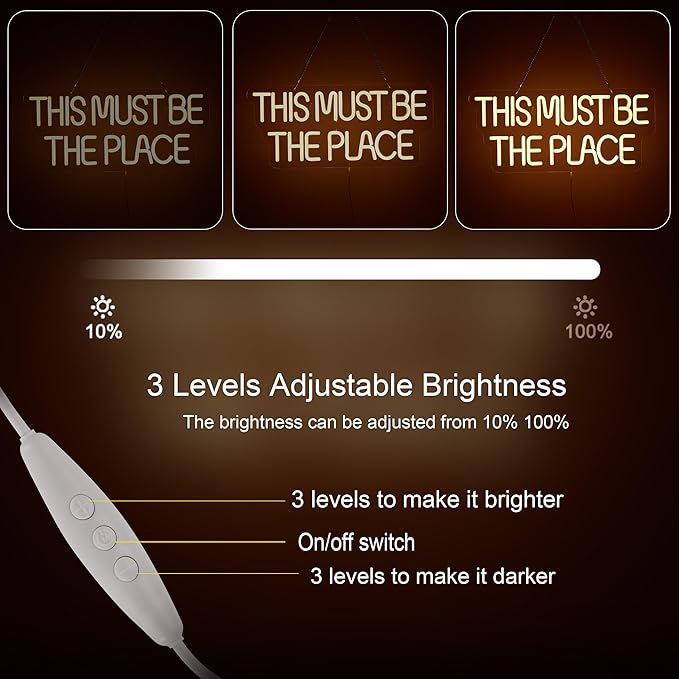 This Must Be The Place Neon Sign for Wall Décor Dimmable LED Neon Light USB Powered Neon Art Signs(Warm White)