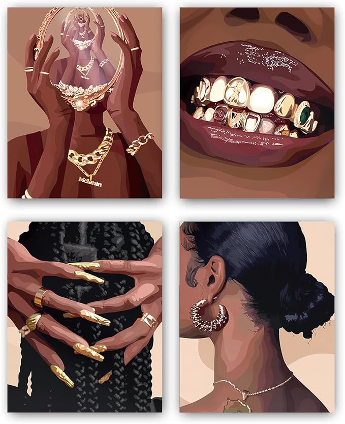- FASHION PRINT SIZE: Our Black Girl Art Poster is 8” X 10” (20cmX25cm)There may be an error of 2-3mm during the cutting process, total 4 pcs, No Frame. Our product mailing service is provided by Amazon. We Want You To Shop Our Modern Art Posters and Prints with Confidence, If you have any concerns, please reach out to us for assistance. We are committed to providing excellent customer service..
