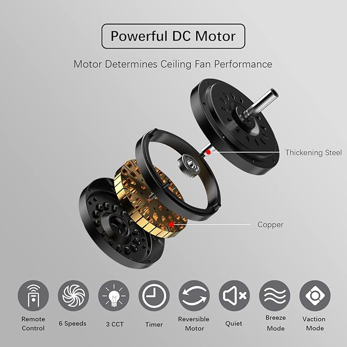 - 3 Color Temperature & Dimmable - with 22W LED Lights, ceiling fans has brightness dimmable. 3CCT ceiling fans support 3000K (Warm White) - 4000K (Neutral White) - 6000k (Cold White) selectable. With memeory function when you use it next time.