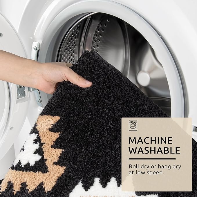 DEXDE Boho Bathroom Rugs Runner 20x47, Black Aztec Western Bath Mat Non Slip Long Luxury Large Bath Rugs Soft Absorbent Carpet for Shower Kitchen Entryway Modern