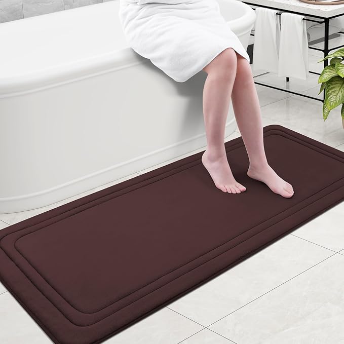 Grandaily Memory Foam Bath Mat Rug 59x24, Ultra Soft, Non-Slip and Absorbent Bathroom Rugs, Machine Wash Dry, Comfortable Bath Carpet for Bathroom Floor, Tub and Shower, Brown