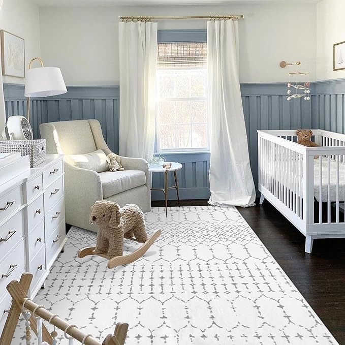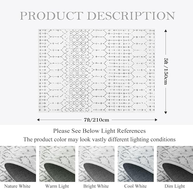 Lahome Moroccan Living Room Area Rug - Washable Rugs 5x7 Non-Slip Soft Throw Rugs for Bedroom White Lightweight Large Rug, Modern Geometric Print Low-Pile Capet for Classroom Office Dining Room(White)
