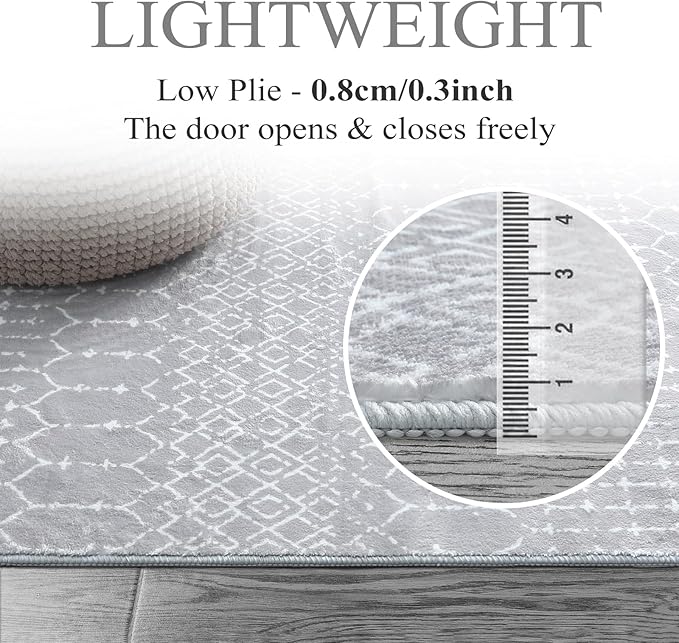 - 【Functional Lightweight Rug】 - Lahome ultra-thin rug are made with everyday use in mind and high-traffic areas. 0.3 inches thickness allows for convenient placement in entryways, kitchen, underneath furniture. The door opens and closes freely and won't create a tripping hazard.