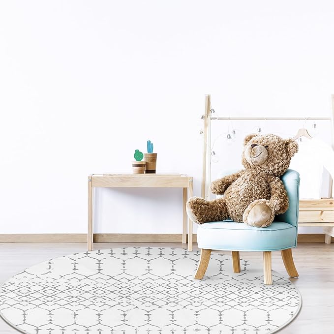 Lahome Moroccan Round Rugs - 4Ft Washable Non-Slip Small Round Area Rug for Bedroom Soft White Low-Pile Round Throw Rug, Modern Geometric Print Indoor Circle Rugs for Kitchen Living Room Sofa Nursery