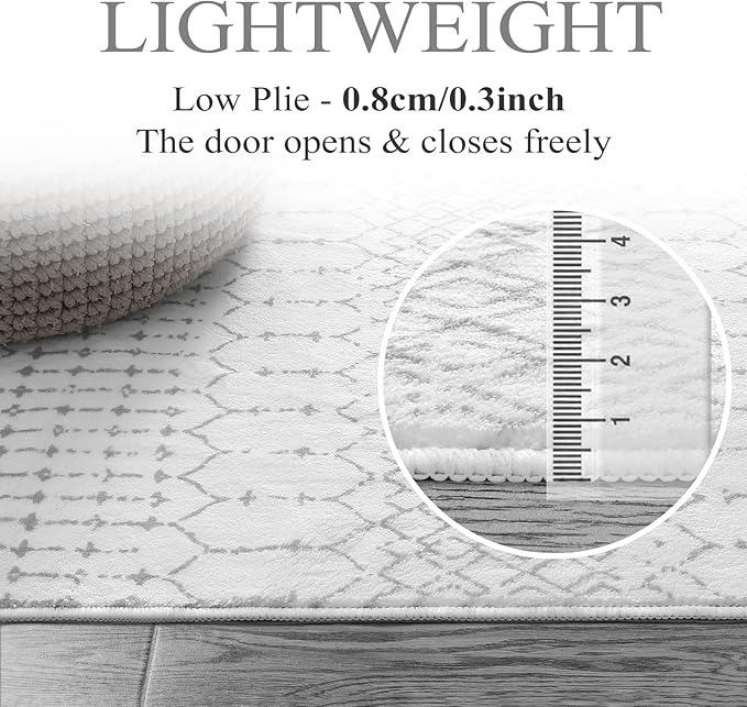 - 【Functional Lightweight Rug】 - Lahome ultra-thin rug are made with everyday use in mind and high-traffic areas. 0.3 inches thickness allows for convenient placement in entryways, kitchen, underneath furniture. The door opens and closes freely and won't create a tripping hazard.
