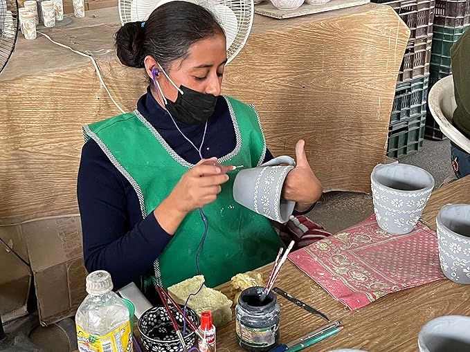 Encantada Handmade Hand-Painted Authentic Mexican Pottery Mugs (Multi Blue Green)