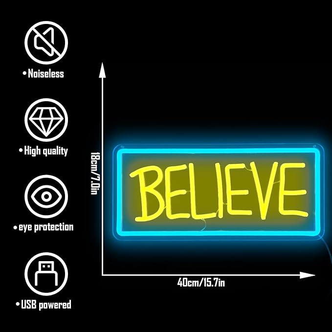 - BELIEVE NEON LIGHT:Our ted believe neon lights have bright colors and vivid patterns.It is suitable for various social activities and festivals, making your friends, lovers and loved ones more pleasant.The LED neon signs uses novel and unique patterns to design and produce, making your room full of unique personal colors