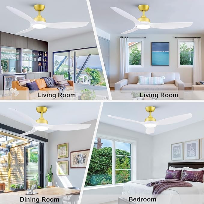 Sevenine Ceiling Fan with Light,White Gold Ceiling Fan,3 Blades,Downrod,6 Speed Adjustable,Dimmable LED,3 Timers,Reversible DC Motor, for Patio Living Room Bedroom Dining Room (White Gold, 52)