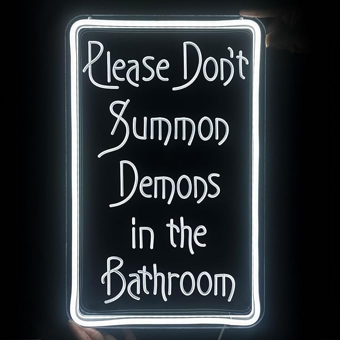 Please Don't Summon Demons in the Bathroom Neon Sign for Wall Decor, USB Powered Switch Adjustable Brightness LED Neon Lights, for Humor Party, Halloween Party, or Christmas