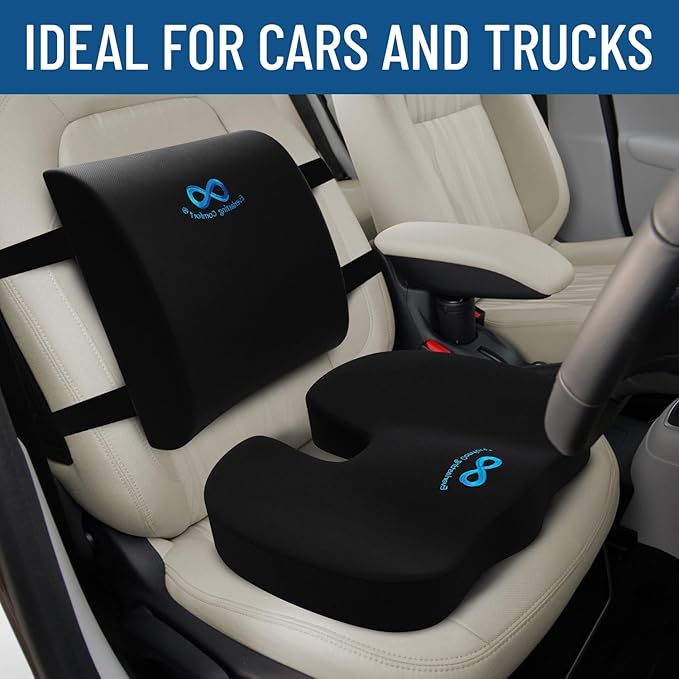 Everlasting Comfort Seat Cushion and Lumbar Support Pillow - Premium Memory Foam Office Chair Cushions for Enhanced Posture, Support, All-Day Comfort - Multi-Use for Car, Desk Chair, Gaming Chair