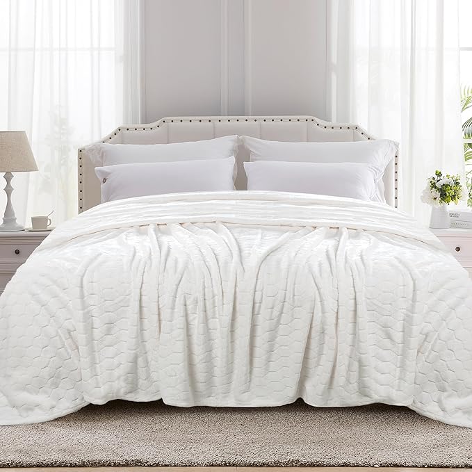 TOONOW Fleece Bed Blanket King Size 90x108 inches, Super Soft Fluffy Fuzzy Plush Blanket Geometric Pattern Cozy Microfiber Flannel Blankets for Couch, Bed, Sofa, Cream White