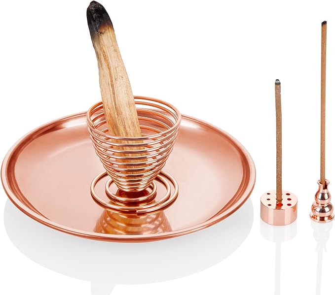- PACKAGE INCLUDE - 1 metal tray with a diameter of 14cm(5.5inch); 1 brass gourd-shaped incense holder, the maximum diameter of the incense that can be inserted is 0.3cm(0.12inch); 1 9-hole disc-shaped holder with three size hole(0.1cm/0.2cm/0.3cm), 1 Palo Santo or sage stick holder with a diameter of 5cm(1.9inch). The specific size as shown in the picture.