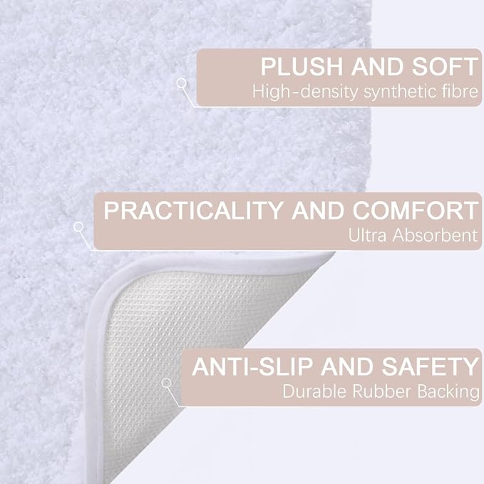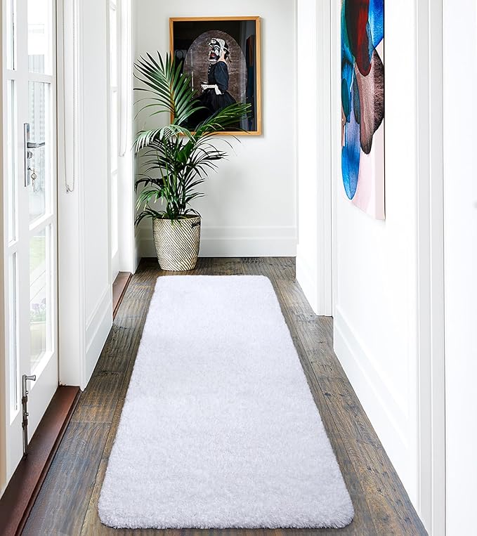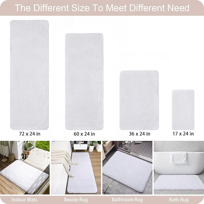 AROGAN Luxury Non Slip Bathroom Rug, Thick Soft and Absorbent Microfiber Bath Mat, Rubber Backing Quick Dry Rugs Carpets, Machine Washable Plush Mats for Shower Floor, Bathroom, 24x72 Inch White