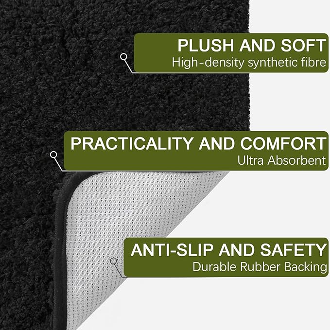 AROGAN Luxury Non Slip Bathroom Rug, Thick Soft and Absorbent Microfiber Bath Mat, Rubber Backing Quick Dry Rugs Carpets, Machine Washable Plush Mats for Shower Floor, Bathroom, 24x36 Inch Black