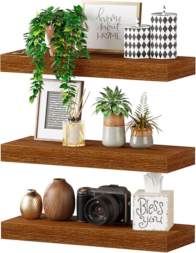 - GREAT FOR ANY ROOM: Our wood floating shelves are made of MDF with a frosted surface texture for a mordern feel that blends perfectly into a variety of different scenes; Having this small floating shelf not only for its decoration effect, but also for its high practicality; It can be used for organizing all household rooms, such as bedroom, living room, study, toilet, cloakroom, even kitchen and warehouse