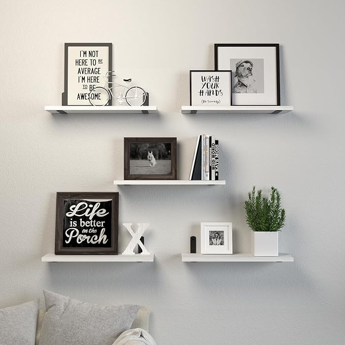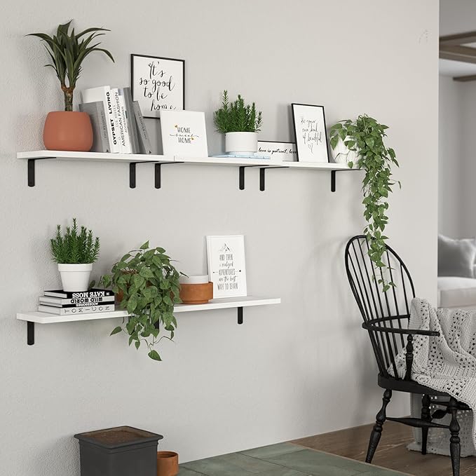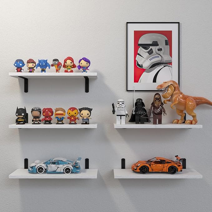 - 【Real Solid Wood Material】DOLLFIO chooses real solid wood to make our floating wall shelves. Our floating shelves for wall look classy and match anything. The grain of wood can add some rustic feeling to your room. Try to use our shelves in your living room, bathroom, bedroom, kids room, and kitchen.