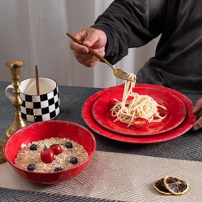 - SPECIAL DESIGN: farmhouse style with modern ceramic crackle glaze technique design .It is an amazing look and will make you enjoy the dinner and have a good mood. Beautiful trend color make the food presentation pop with color, great choice for families