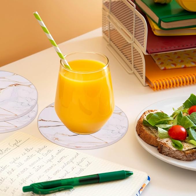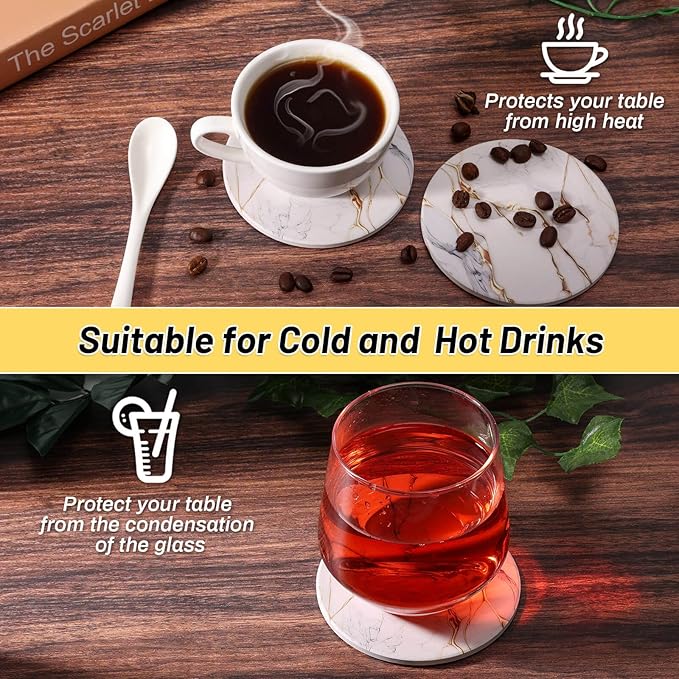 - Beautiful table decoration: These marble appearance cup coasters are great to decorate your kitchen, living room, bedroom or office. With our absorbent coasters, you don't worry about the drink drip and dirty your favorite table. You can enjoy a good time with your family or friend together.