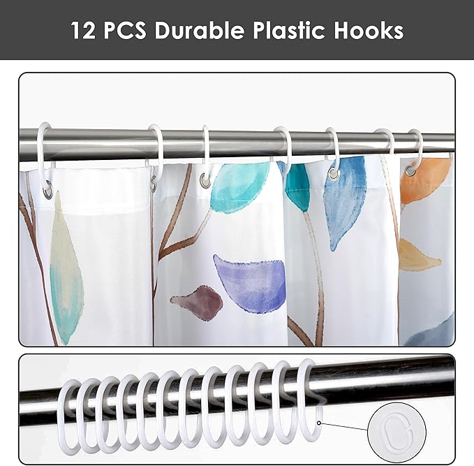 - Suitable Size: 60"W x 72"H. Contains 12 plastic hooks easy to install. can be used for bathtubs, shower stall, or any bath.