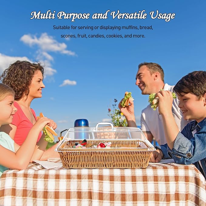 - Versatile Usage: the wicker large bread basket for serving can be applied to store baked goods, fruits, vegetables or other household items; With the clear lid, it's easy to see what's inside without having to open it