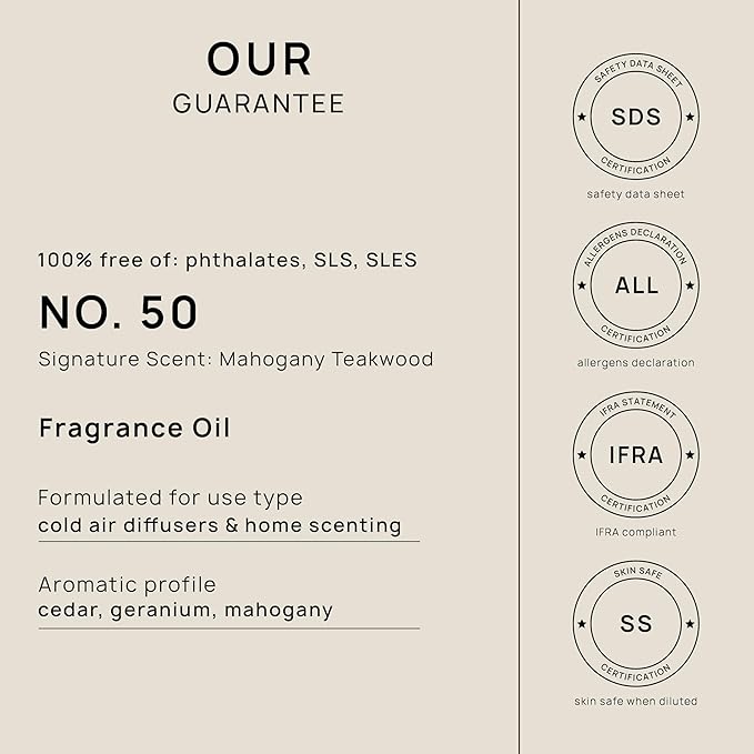 - ENHANCE YOUR HOME AMBIANCE: Elevate your space with the rich and luxurious scent of Mahogany Teakwood Fragrance Oil.